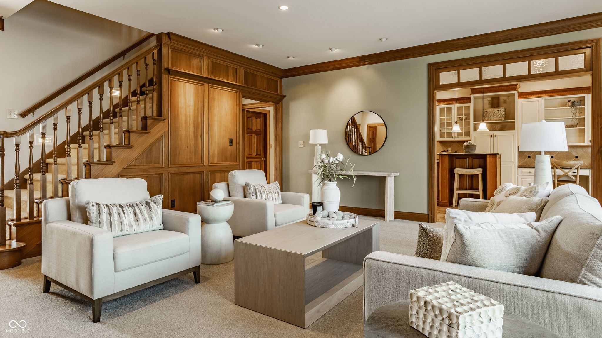 Experience the lakefront lifestyle you've been dreaming of, with stunning waterfront views. Nestled on a prime lot on Lake Kesslerwood in Indianapolis, this beautifully refreshed home offers more than 4,500 sq ft, 4 bedrooms, 4.5 baths, and the kind of everyday setting that makes coming home feel like a getaway. From the moment you arrive, the winding driveway, generous parking, basketball area, and spacious 3-car garage create an inviting first impression. Inside, the home has been thoughtfully updated with fresh paint, updated lighting in multiple rooms, new carpet in family room, dining room, and main level bedroom, along with addl improvements in the primary bathroom and basement. Designed for both comfortable living and entertaining, the gourmet kitchen features a built-in oven, built-in cooktop, stainless steel appliances and a separate prep sink in the island. It flows beautifully into the spectacular all-season sunroom, where lake views create a peaceful retreat in every season. The den/study offers rich hardwood floors & wood paneled walls, stunning built-in cabinetry, making it the perfect space for working from home. Lots of wood detail around the home including crown molding and gorgeous bookshelves flanking the family room fireplace. Upstairs, the bonus room provides flexible space for recreation, addl bedroom/ workspace, with the added convenience of a private staircase from garage. Fully finished basement with bar area, full bath, sauna, living room and rec room. Outside is where this home truly shines. Spend cool spring evenings on the back deck overlooking the spacious backyard and water beyond, then stroll down to your private dock and lakeside seating area to enjoy morning coffee or the sunset views. This is more than a home. It is a lifestyle. Move-in ready and full of charm, this waterfront gem is one you won't want to miss.